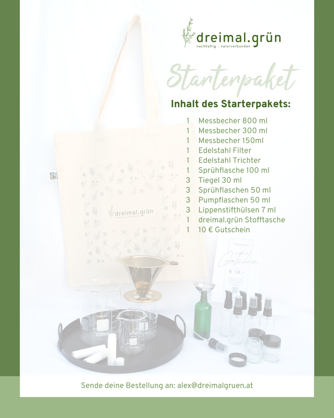 Mit meinem dreimal.grün Starterset hast du alles, was du brauchst direkt zur Hand: