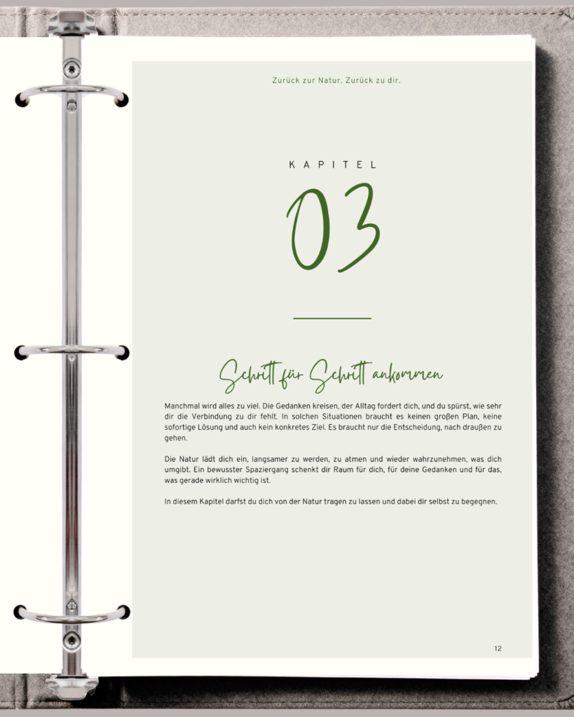 Dieses Workbook begleitet dich mit alltagstauglichen Impulsen aus der Natur, kleinen Ritualen und achtsamen Übungen, die dich dabei unterstützen, zur Ruhe zu kommen und wieder bei dir anzukommen.