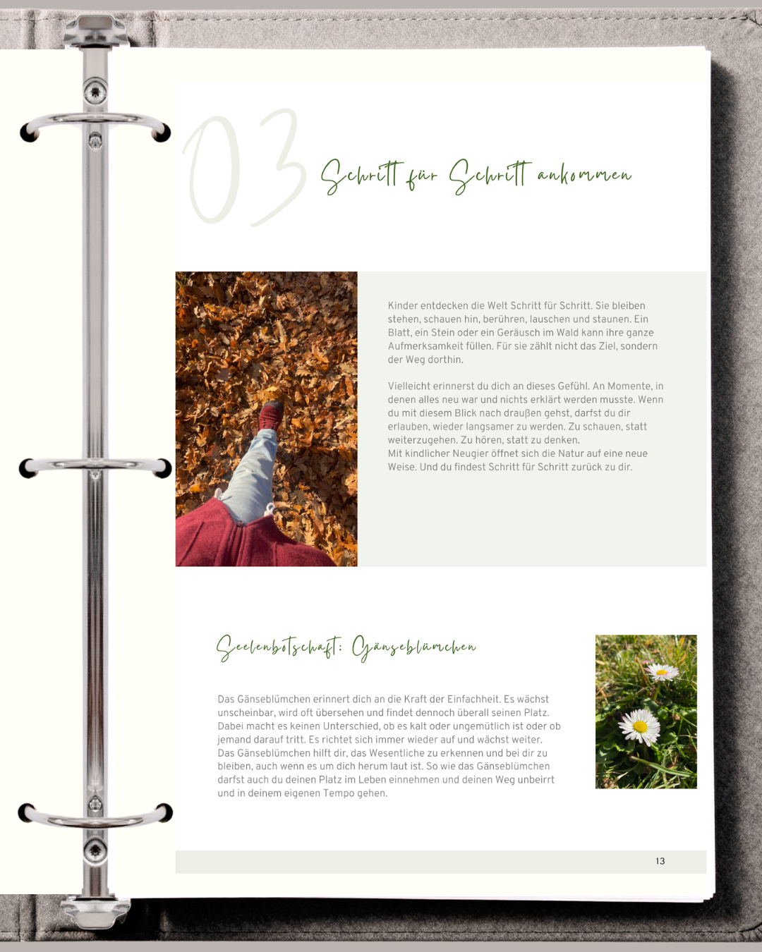 Dieses Workbook möchte dich nicht verändern oder optimieren. Es erinnert dich daran, gut für dich zu sorgen, auf die Signale deines Körpers zu achten und dir immer wieder kleine Pausen zu erlauben.